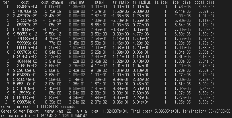 ceres::Solve(options, &problem, &summary); // 최적화 시작