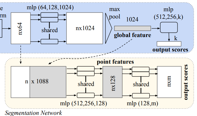PointNet은 object classification, part region segmentation에서 다른 출력으로 모델을 구성