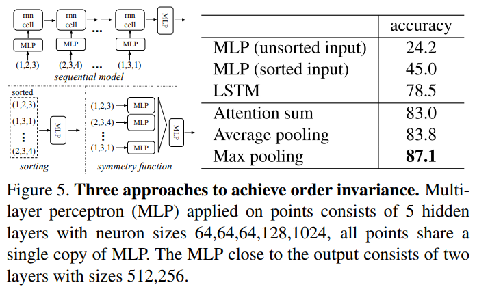 - 최종적으로 symmetric function으로 point set에 적용함으로써 근사화 한 후 입력으로 사용했을 때 가장 좋은 성능을 보였기에 이 전략을 사용