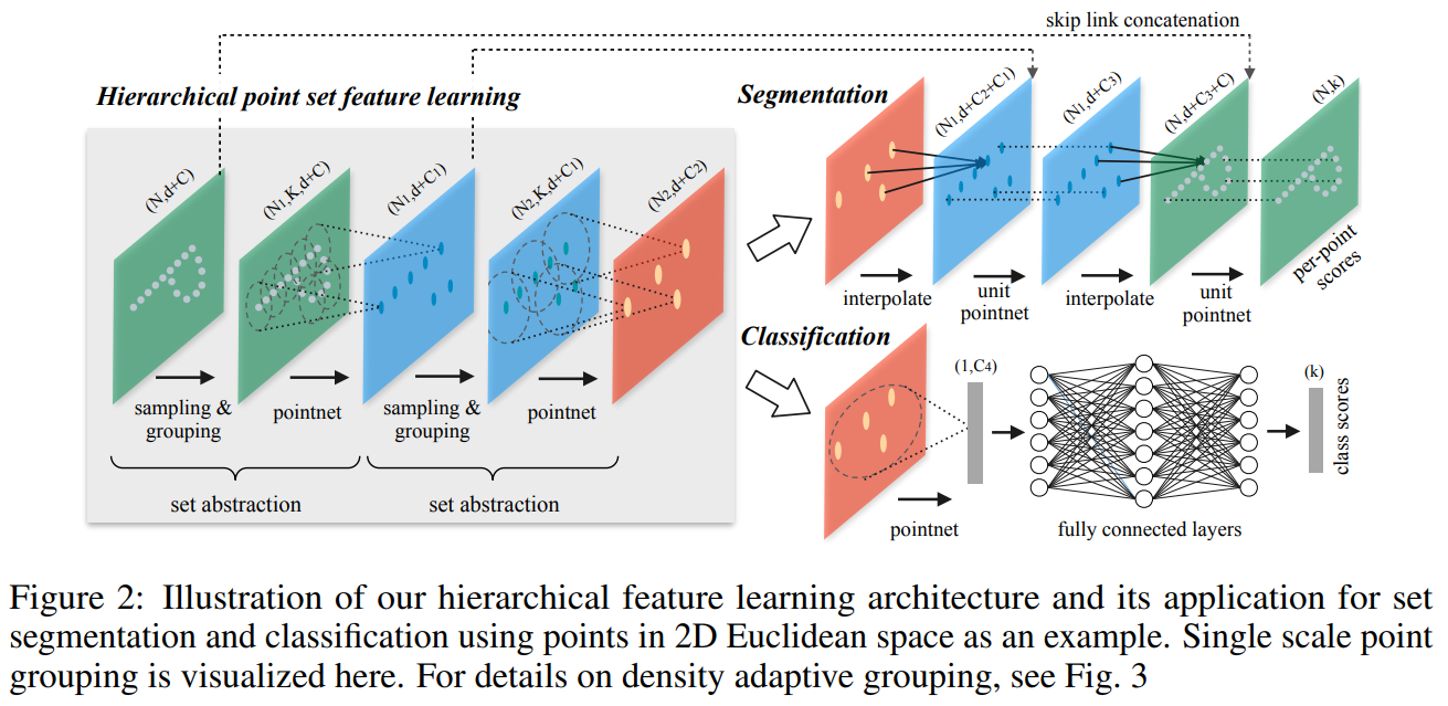 PointNet++ 구조는set abstraction 모듈이 연속되면서 feature를 뽑아내고 각 task에 알맞게 동작하는 구조를 갖는다.